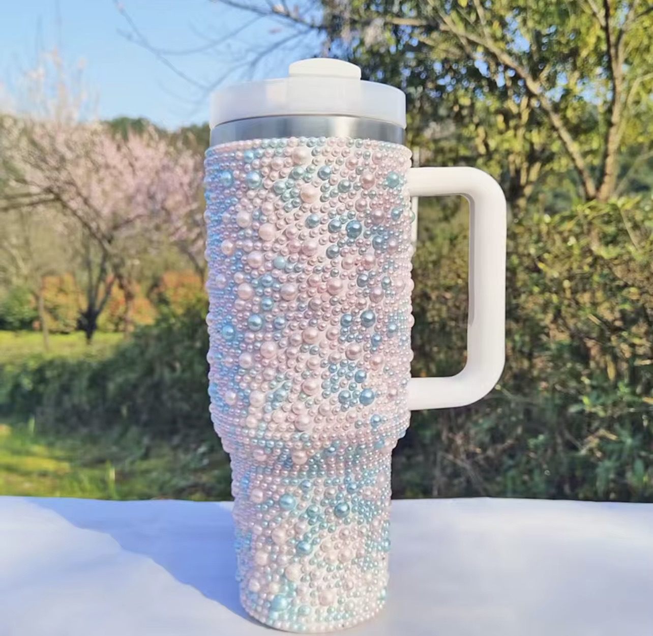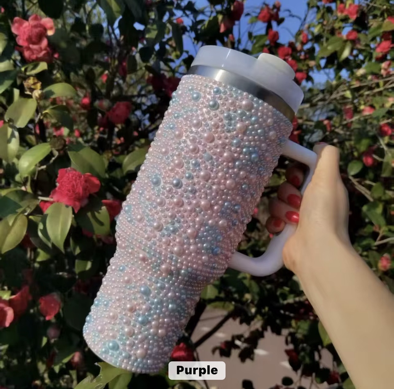 Product Description Pearls Bling 40 oz Tumbler with Handle and Straw | Rhinestones 100% Leakproof Stainless Steel Insulated Tumbler with Lid and Straw | Cup Holder Friendly Base -Purple